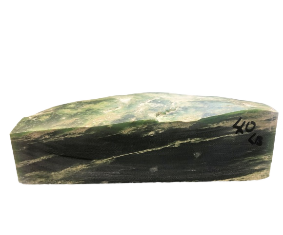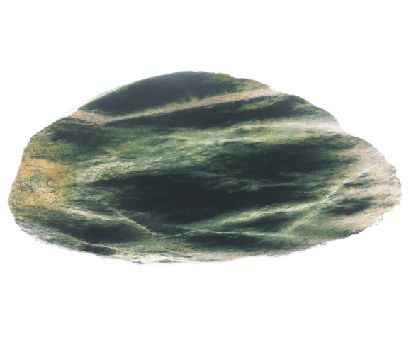 A grey-green colour. It is either very translucent or quite opaque. Highly prized by the Maori and the desired material for making mere and patu.